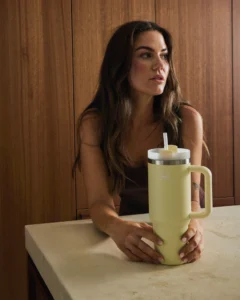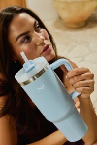 With a modern puffer aesthetic, this trendy tote bag is available in two colors - Powder Blue or Espresso. It features a magnetic closure, rope details, side pockets, internal sleeves and is ideal for the gym, running errands, or a day out.